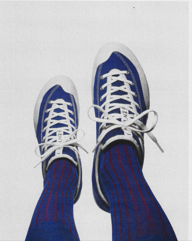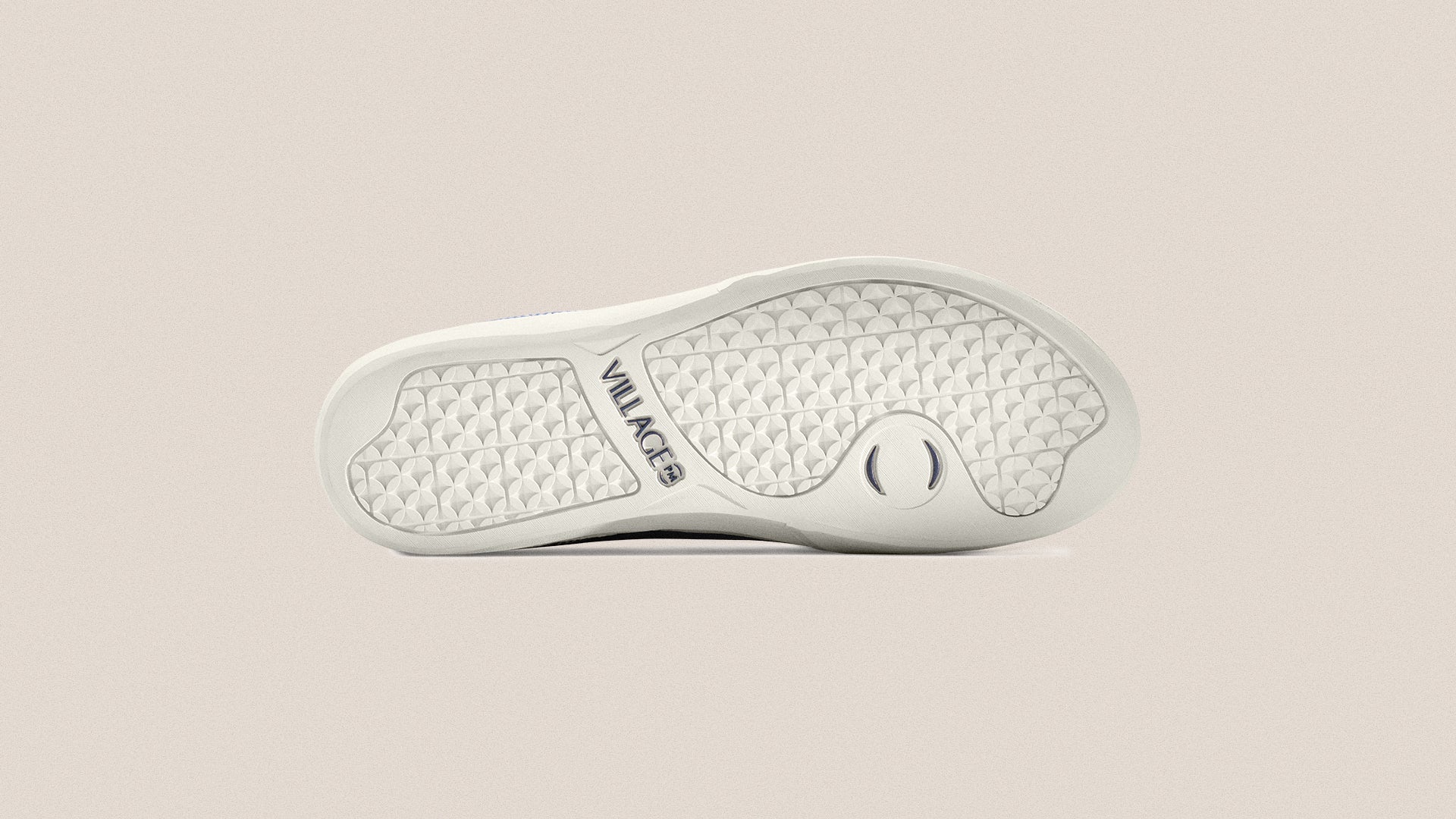 Not vulcanised. Not a cupsole. Soft, sticky rubber that breaks in fast, keeps consistent flick and lasts a long time. Manually wrapped around your foot for a precise fit that stays close throughout the lifetime of your Village PM shoe.